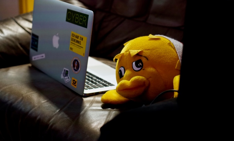 Puffy mit Laptop