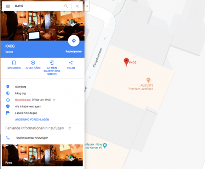 Die Öffnungszeiten hab ich auch eingetragen von 19:30 bis 22:00 so wie sie auch dem Haus kommuniziert wurden. Von Montags hab ich jetzt mal abgesehen da wir da noch nicht wissen ob das regelmäßig und verbindlich zu stande kommt.